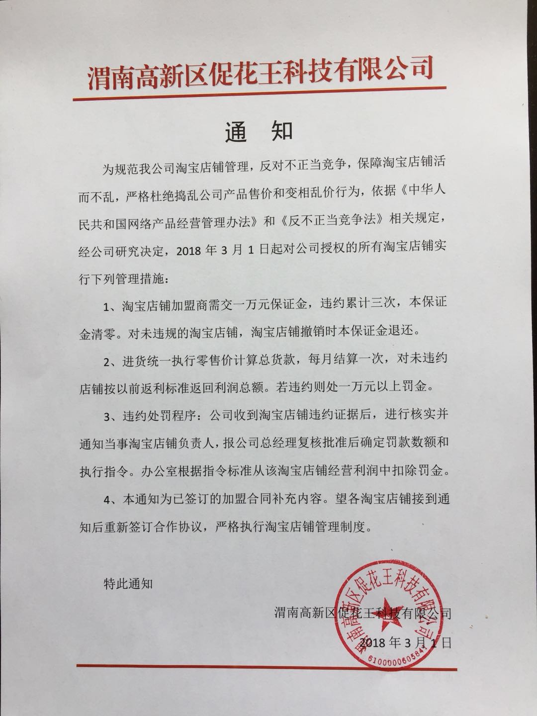 淘宝店铺管理通知